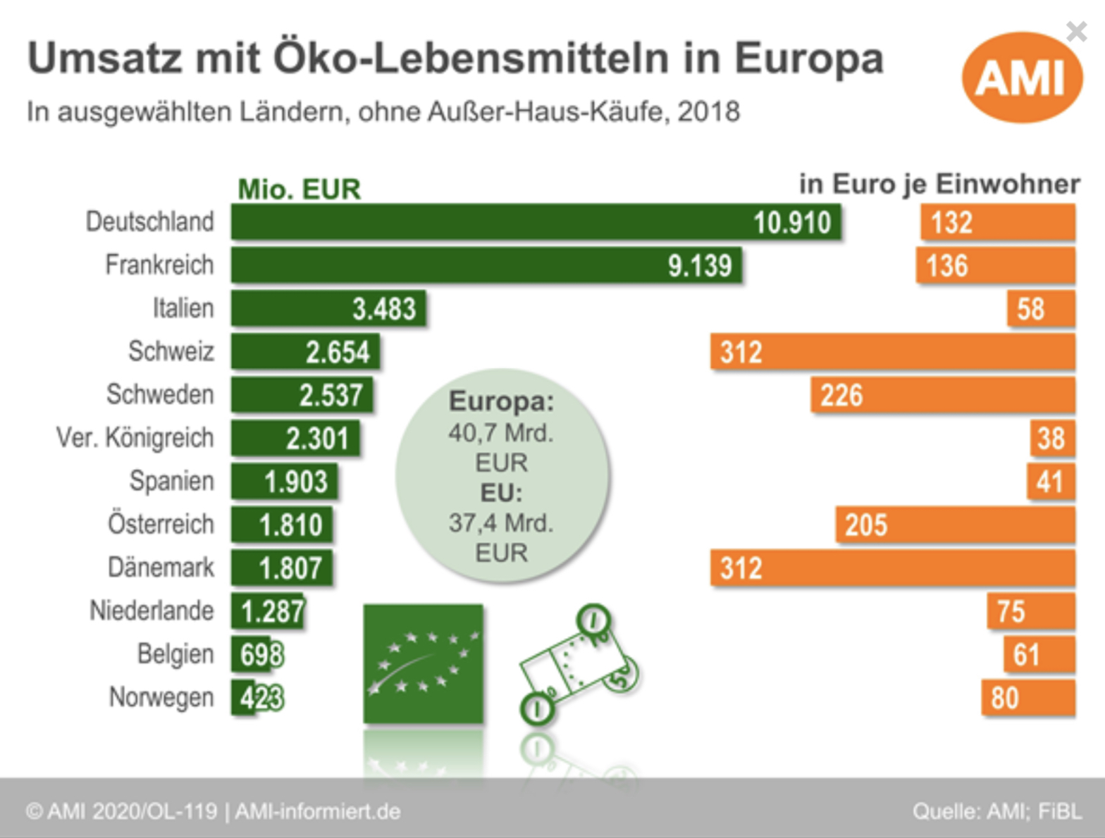 With all the joy of the progress in Germany, it remains to be noted that Danes and Swiss in Europe spend significantly more per capita on organic products than the Germans and that the country France is preparing itself with its organic market, which is increasingly oriented towards a local and regional raw material base, to catch up with the German figures with a noticeably higher willingness to spend on high-quality organic products in the foreseeable future. Especially since the figures provided here only relate to 2018.