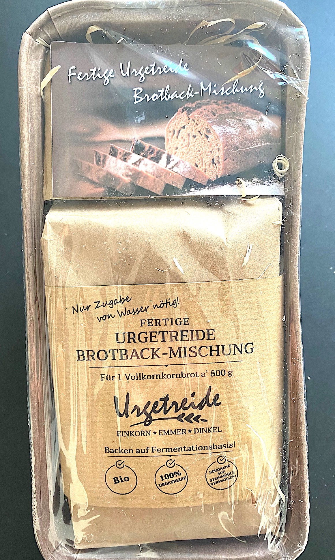 Unter Kennern aus dem Bio-Umfeld ist die in Ungarn produ-zierende Firma Naturgold als Biolieferant für alte Getreide längst bekannt. Jetzt bietet die Firma fertige Brotbackmischungen mit Emmer, Einkorn und Dinkel. Das sind fertige Sets mit Backform, Mehl und einem speziellen veganen Ferment. Das Backferment bewirkt am Ende einen sehr angenehmen Geschmack, macht das Brot zudem sehr bekömmlich und paßt hervorragend zu den alten Getreiden. Zugegeben, die angesetzter Mischung muss etwas länger gehen, aber das lohnt sich durchaus.
