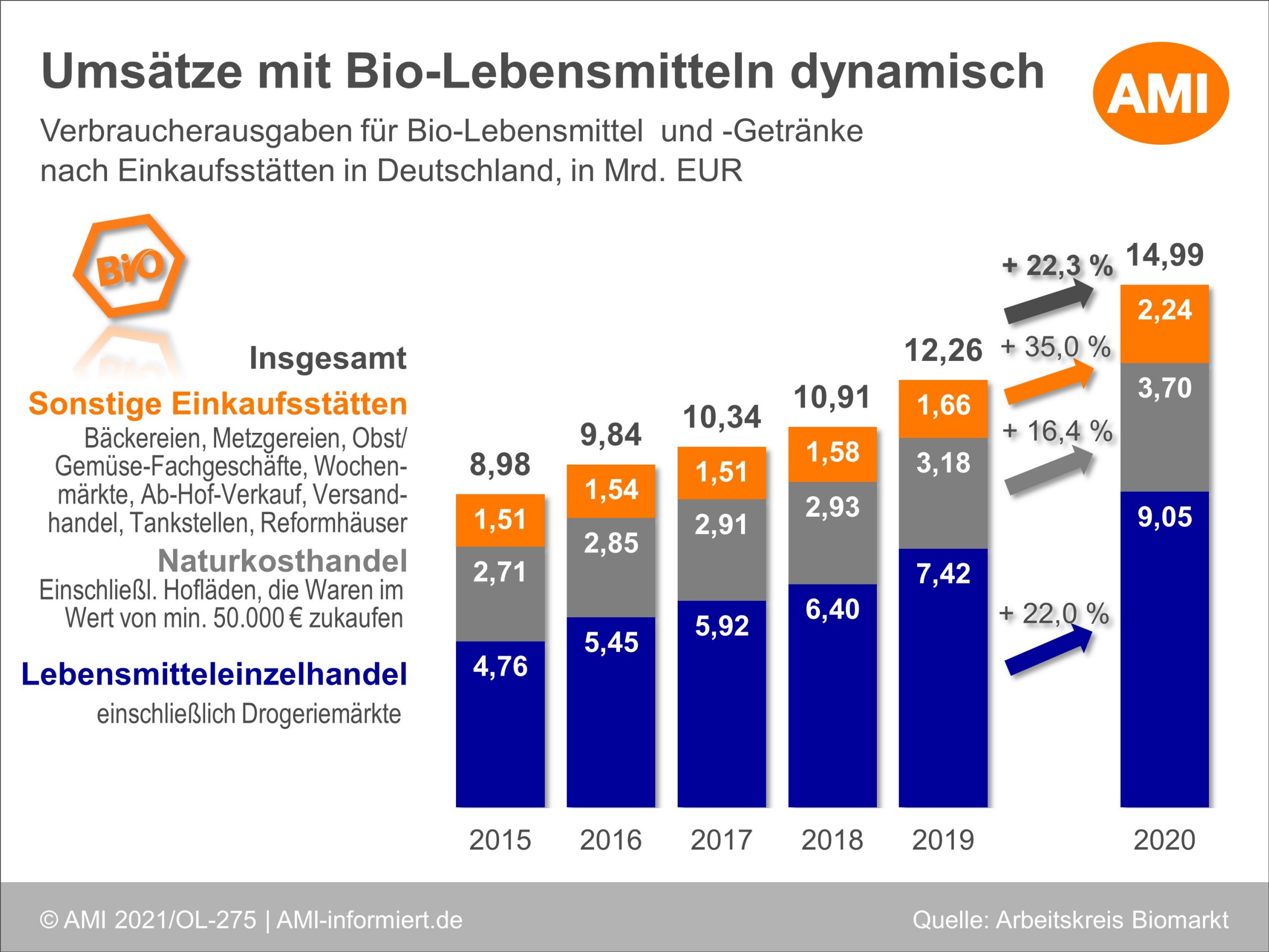 r Fleischverzehr im letzten Jahr zurückging, legte Biofleisch zu. Fachleute schätzen den Markt für Bio-Milch und pflanzliche Drinks in Deutschland derzeit auf eine Milliarde. Pflanzendrinks haben hier den Löweanteil am Zuwachs, 2020 mit 55 % und davon fielen 70% auf Bioprodukte. Der immer noch etwas diffus erfassbare Markt von Bio-Fleischersatz legte 33% zu.