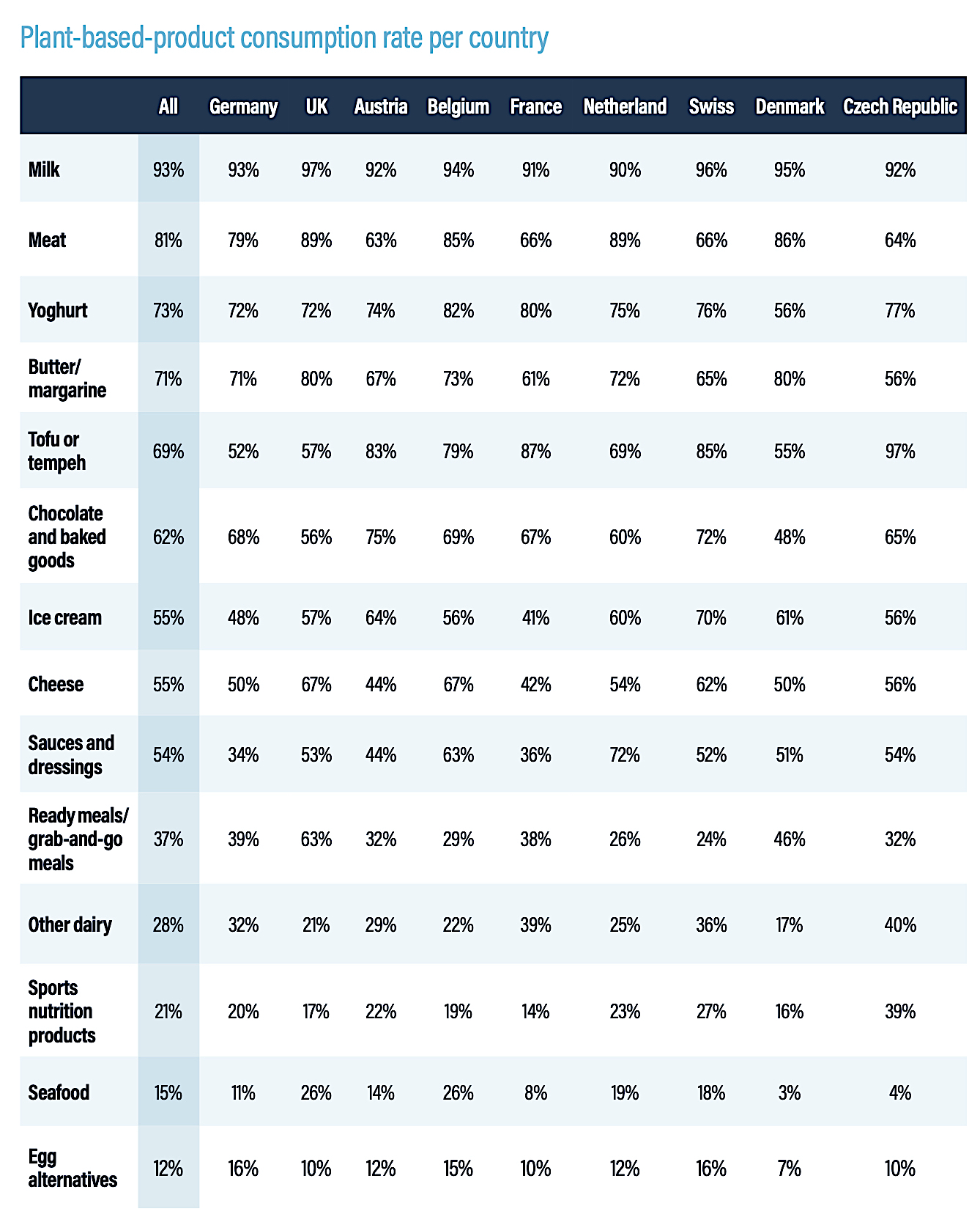 Trendaussagen auch eigenen Beobachtungen entsprechen, etwa die Tatsache, dass vegetarische Drinks in diesem Bereich klar die führende Kategorie sind. Auch die Unterschiede in der Bewertung von Tofu zum Beispiel zwischen Deutschland und Frankreich bildet die Studie gut ab. Ebenso liegt die Studie mit der Darstellung des augenblicklichen Konsumstatus weitgehend richtig.