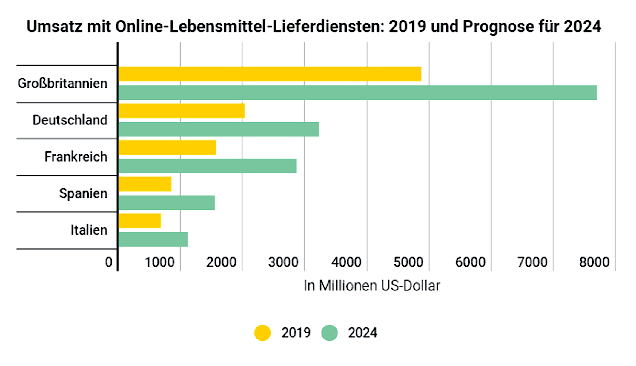 - Prognose: jährliche Umsatzanstiege bei Bestellungen von Lebensmitteln via Internet von 9,8 %