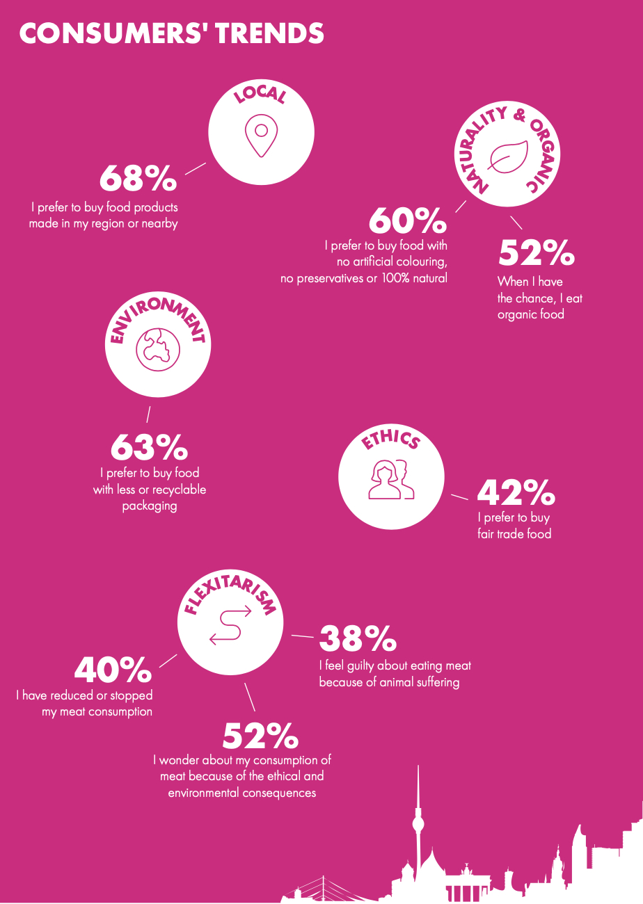 Die Ernährung geht mehr in Richtung „Flexitarier“, wenn auch dieser Trend deutlich hinter den anderen zurücksteht. Weltweitweit und exemplarisch auch in Frankreich sind diese Trends eher noch ausgeprägter als in Deutschland. Der Aussagewert dieser Studie von Kantar besteht vor allem auch darin, dass die Eindrücke bereits seit Jahren ähnlich erhoben werden und dadurch die Veränderungen viel klarer ausgemacht werden können. Eine sehr gute Idee, diese Studie der Branche vorzustellen.