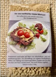 Inzwischen gibt es richtig leckere Ferigmischungen für die schnelle Küche, die mehr können als mit Körnern aufgepeppte Tomatensauce und gerne auch ohne Soja und auch ohne Kleistermasse als Bindemittel. Selbst in der sonst gegenüber diesen Zutaten zurückhaltenden Gastronomie überzeugen diese Zutaten mit einem soliden Proteingehalt, leckrem Geschmack und einem für