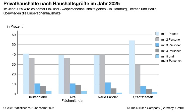 Hersteller wie Handel werden sich wohl in Zukunft noch viel direkter darauf einstellen müssen, dass kleine Einzelverpackungen für kleinere Haushalte, bequeme Küche für unterschiedliche Altersgruppen sowie die entsprechenden Serviceangbote für diese Zielgruppen im Vordergrund stehen werden. Laut Daten des Statistischen Bundesamtes ist klar, dass die Zahl der Singelhaushalte - vor allem in den Städten - unübersehbar zunimmt. Bis 2025 sollen sie über 40 % aller [...]