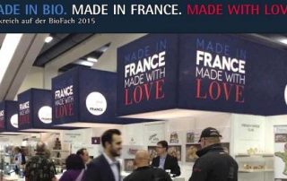 Pavillon France auf der BioFach Halle 1 2015 mit genau 101 Ausstellern und vollem Programm
