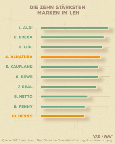 Die Marke Alnatura belegt in einem aktuellen Ranking der stärksten deutschen LEH Marken laut Brand Asset™ Valuator (BAV) den 4. Platz. Vor Kaufland und REWE. Ebenfalls unter den Top 10: Denn’s Biomarkt. Auch wenn die Zeiten, als Bio der letzte Schrei war, vorbei sind - der Markt für ökologisch erzeugte Lebensmittel verzeichnet in Deutschland nach wie vor ein kontinuierliches Wachstum.22% der Bevölkerung geben an, häufig oder ausschließlich Bioprodukte zu [...]