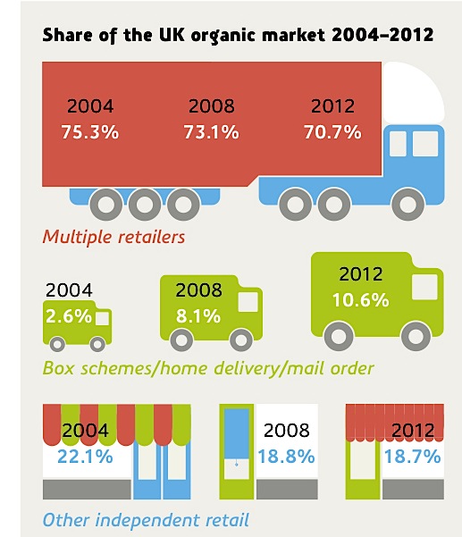 Der britische Biomarkt hat sich nun seit fast acht Jahren immer noch nicht von seinem Einbruch aus der Finanzkrise erholt und trotzdem wartet er gerne mit innovativen Details auf: 10,6% der britischen Bioumsätze entfallen auf eine Biozustellung nach Hause. Während der Bio-Umsatz sowohl in den großen Handelsketten wie auch in Fachgeschäften während der Krise zurückgung, erlebte der innovative Markt der Direktlieferung nach Hause einen deutlichen [...]